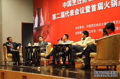 下午,产业大会高峰论坛在与会代表们自发的合唱——《歌唱祖国》的歌声中正式启动了。代表们用歌声表达了在当前严峻的经济形势下火锅行业团结一心共渡难关的决心。高峰论坛由河南一尊实业总经理代义主持,青岛摸错门餐饮有限公司董事长刘传涛、云南大滇园董事长刘子昆、北京黄纪煌技术开发有限责任公司董事长黄耕、重庆德庄总经理周宏、北京鼎鼎香餐饮管理有限公司总监丁永参加讨论,嘉宾们分别对企业的发展展开详细阐述并与与会代表进行了详细交流。高峰论坛认为“找准企业定位”、“提高企业核心竞争力”、“创新改革”、“求同存异”是火锅行业乃至餐饮业所必不可少的要素,并以自身企业为例向代表们分享了其中经验,代表们均觉受益匪浅。