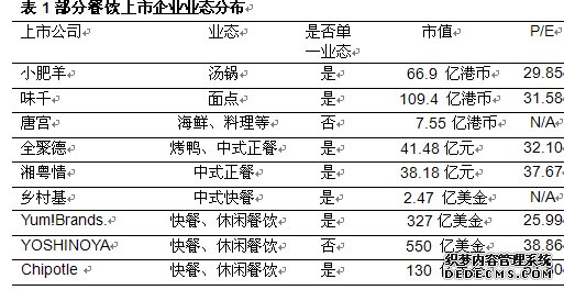 纵观表1中国内外餐饮上市公司,我们发现获得资本市场认可的餐饮业态的特征大致如下: