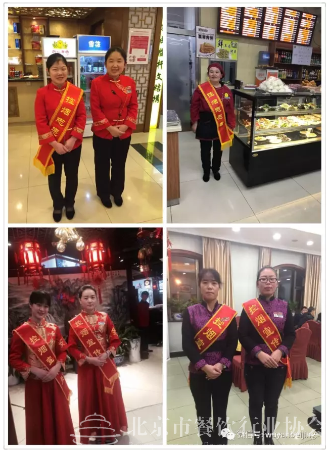 餐饮企业领导和员工对照创建“无烟示范餐厅”十条标准积极行动,主动修改完善本单位控制吸烟管理制度;明确责任分工和管理职责;建立控烟志愿者履行劝阻吸烟和开展义务巡查机制;张贴室内公共场所禁止吸烟公益宣传品;积极开展劝阻吸烟行动,耐心劝解仍在餐厅内的吸烟者大力营造餐厅无烟环境。“无烟北京”曝光台”对餐饮行业控烟投诉举报比例取得大幅度下降的良好成效。