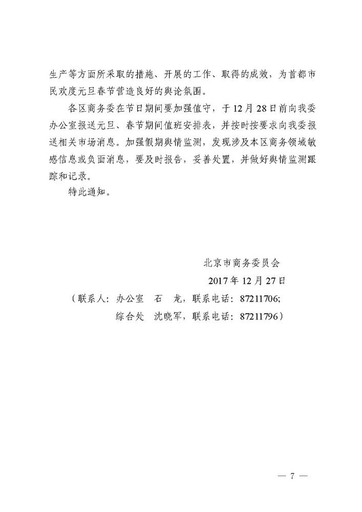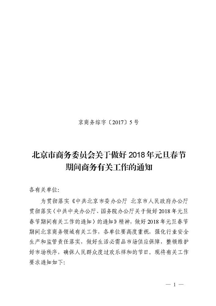 关于做好2018年元旦春节期间商务有关工作的通知