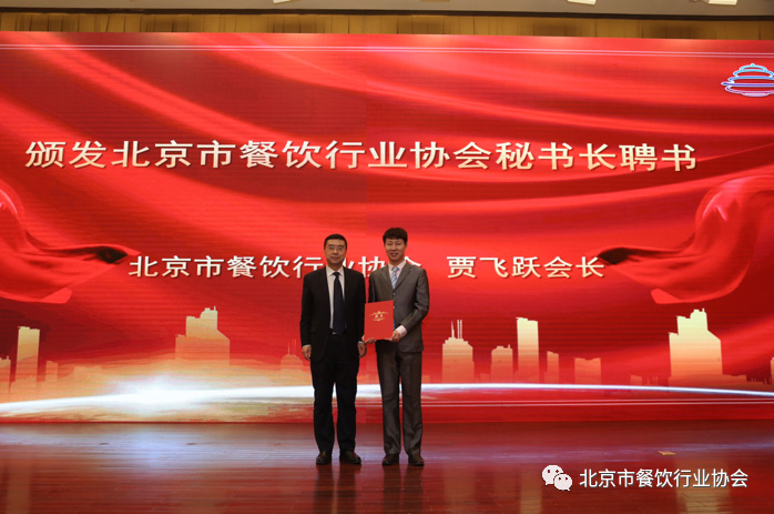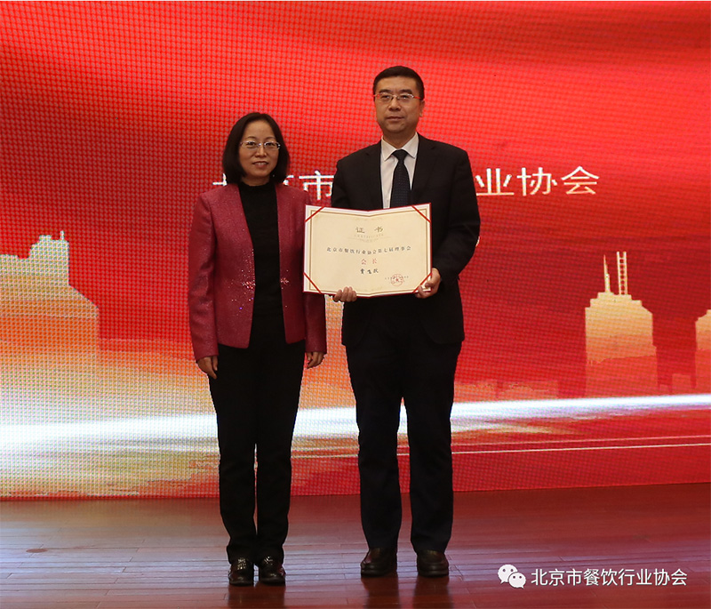 贾飞跃会长在讲话中强调,北京市餐饮行业协会新一届理事会将以习近平新时代中国特色社会主义思想为指引,围绕北京建设国际一流和谐宜居之都的目标,在市商务局和市民政局等政府部门的指导下,在市商联会等社会各届及全体会员单位的支持和帮助下,按照协会宗旨和章程,进一步做好“四个服务”即“服务政府、服务行业、服务企业、服务消费者”工作,推动行业的规范和进步,促进行业的繁荣和发展;秉承“搭建平台、互相帮助、超越自我、不断进步”的团队理念,广交朋友,广聚资源,与会员企业一道共同成长,追求卓越。