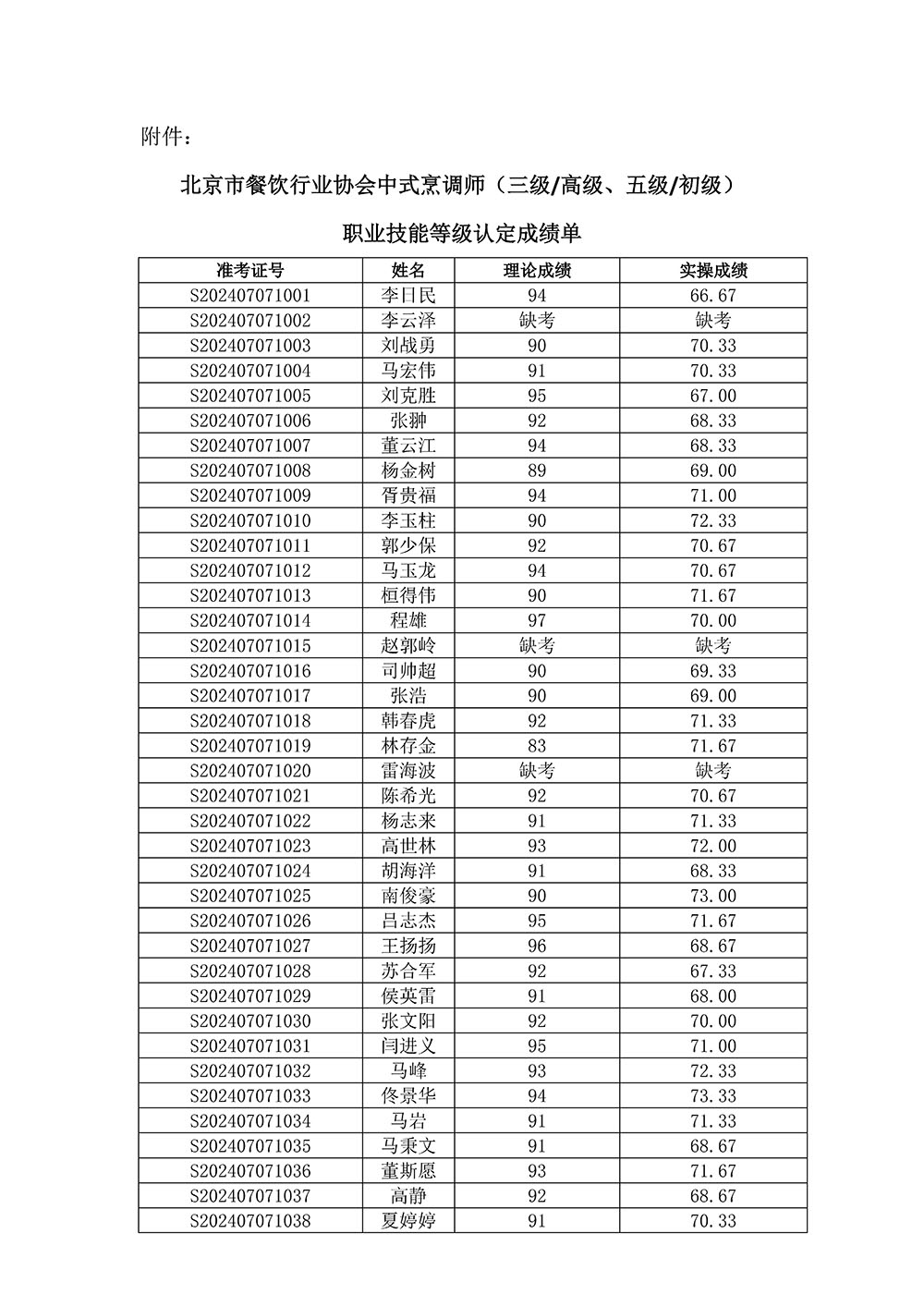 中式烹调师(三级/高级、五级/初级)职业技能等级认定考试成绩公示