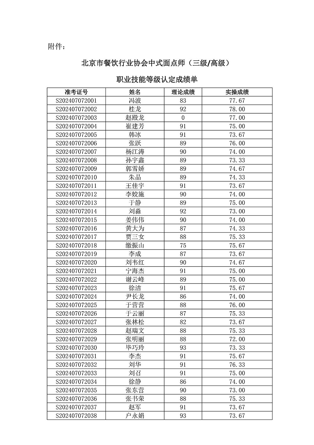 中式面点师(三级/高级)职业技能等级认定考试成绩公示
