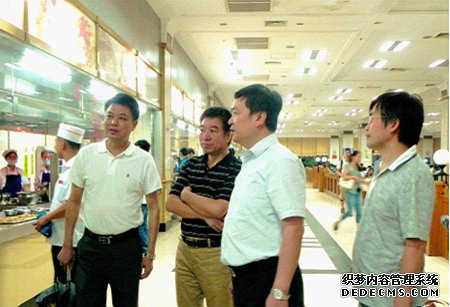 在华中科技大学饮食总公司总经理张双喜的陪同下,李局长对学生食堂进行了考察,他深入到进餐区、操作间、储存库等地,对食堂的持证情况、环境卫生、人员健康证、食品原料采购等进行检查。在考察中,张总还特别向李局长介绍了学校四个食堂暑期改造的相关情况:近年随着学校的快速发展,校内原来的韵苑等四个食堂因建设时间早,都不同程度的出现进餐面积狭小、就餐条件有限等情况。为进一步开展好党的群众路线教育实践活动,全面落实校领导为广大师生办实事的指示精神,饮食总公司采取申请拨款和集团自筹的方式共投入近二千万元,对这四个食堂进行了改造。经过今年暑期紧张地抢修改造,四个食堂在卫生管理、进餐环境、花色品种、食堂装饰等方面得到了全面提升。新学期开张之后,前来就餐的教职工纷纷对进餐环境、伙食品种、服务态度、饭菜质量、保障能力等方面都十分满意。李局长对此给予了高度评价,并表示华中科技大学这些关心学生身体健康、关注食堂硬件建设的举措值得大力推广。